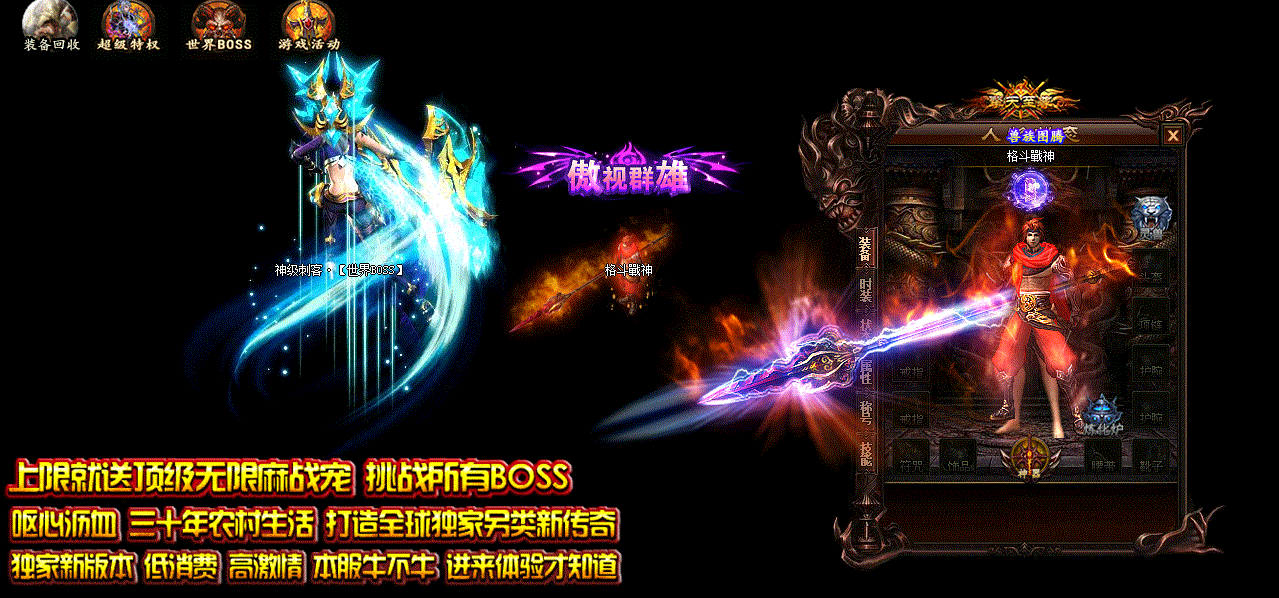 全面更新多套神力装,属性平衡,PK激情,人山人海