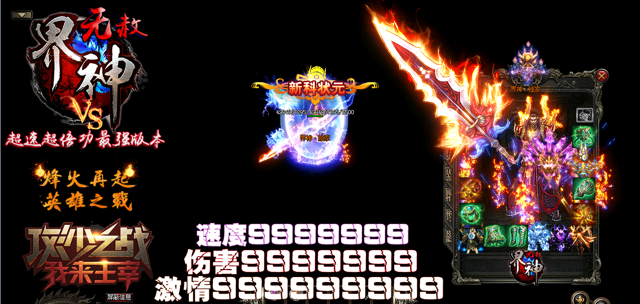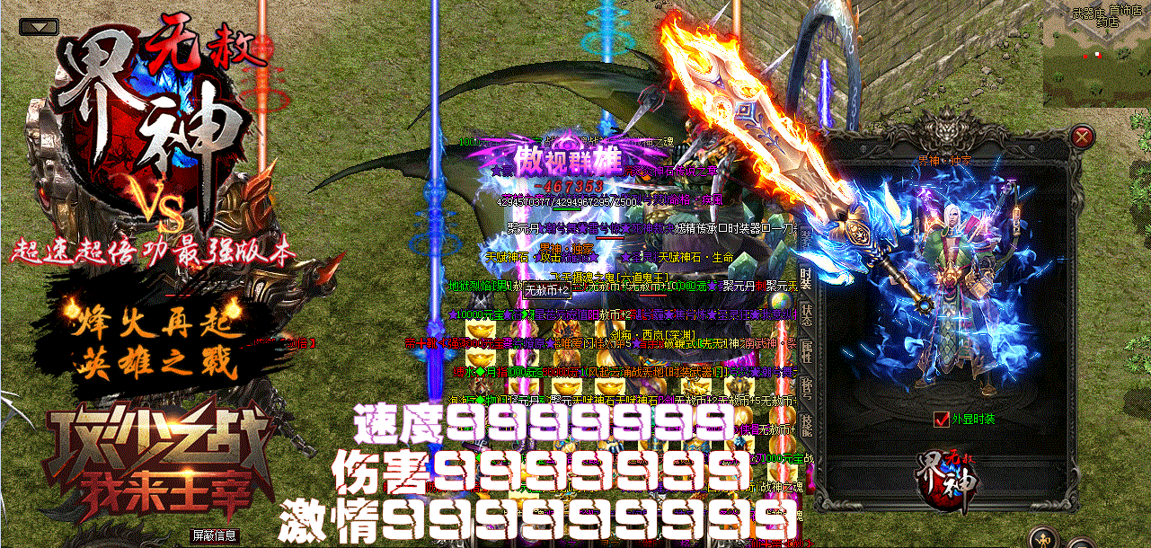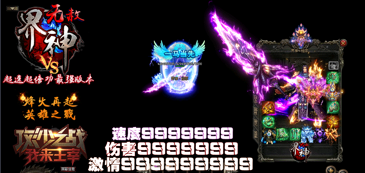 全面更新多套神力装,属性平衡,PK激情,人山人海