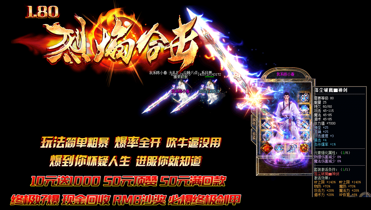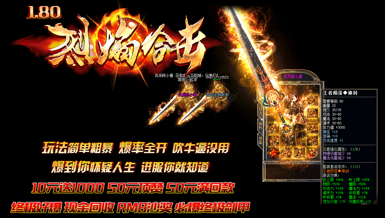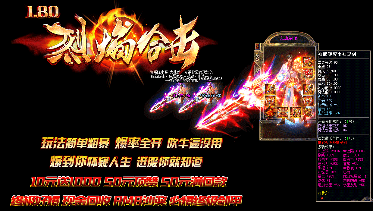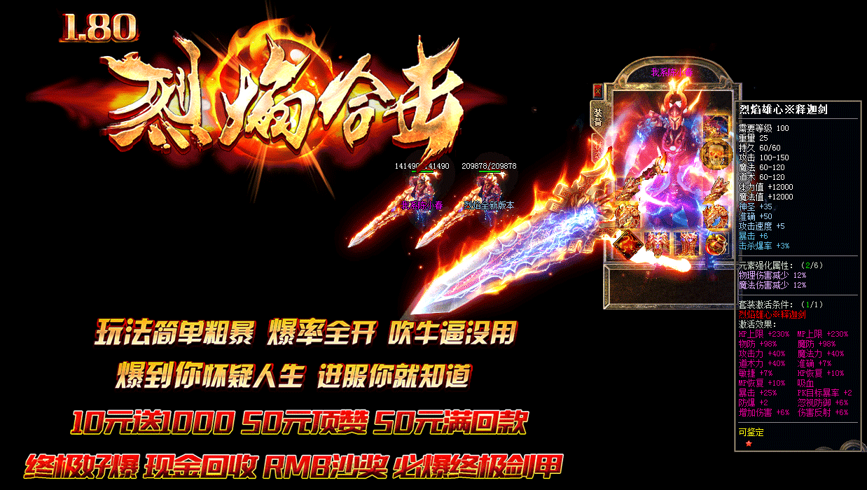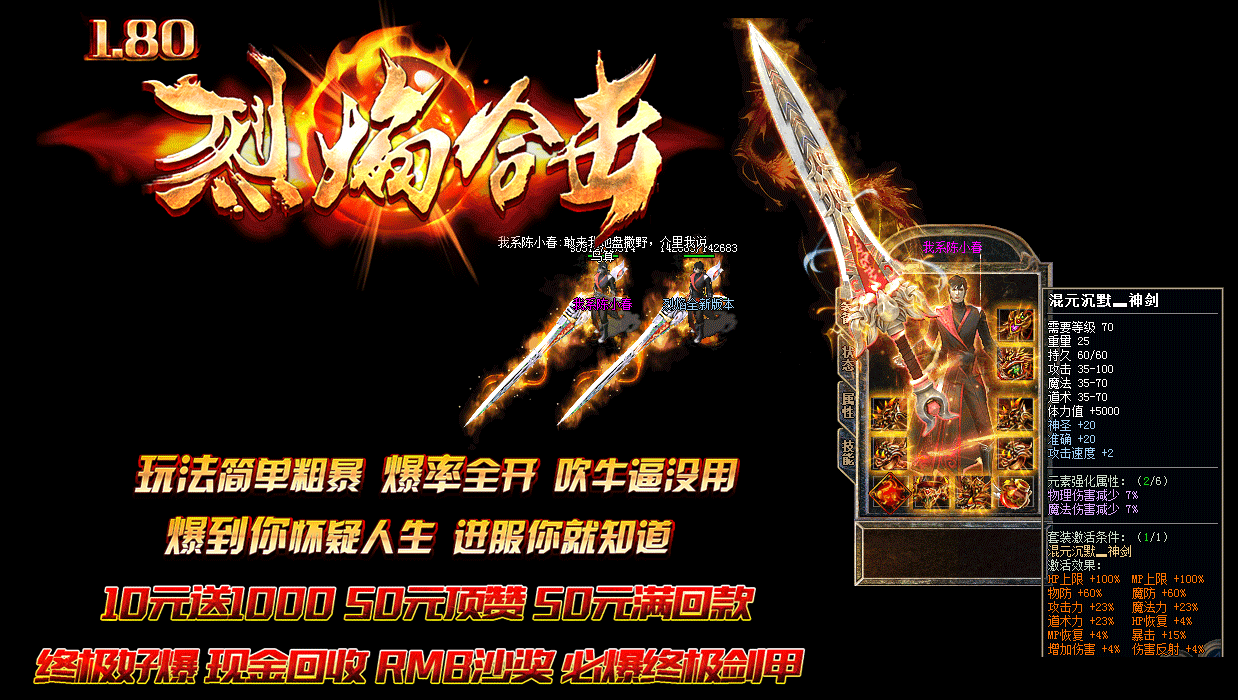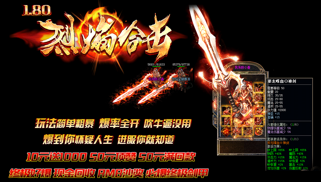 - 元宝1:2000 10元送1000 50元顶赞 无隐藏 终级狂暴 回收担保群:818633380烈焰合击