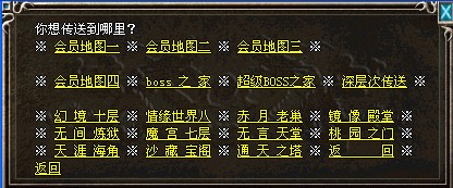 会员免费进入,砝码镇魔守将NPC,4个地图分别为: