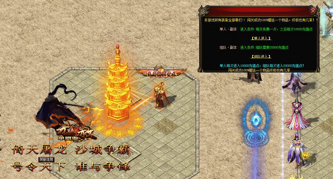 - 游戏介绍装备自带刀刀秒血,让您爽快驰骋沙场,PK激情四射!!!