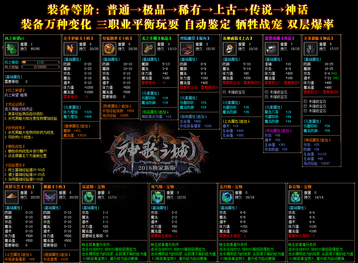 增加上古类装备属性、更新藏宝图、优化招安系统