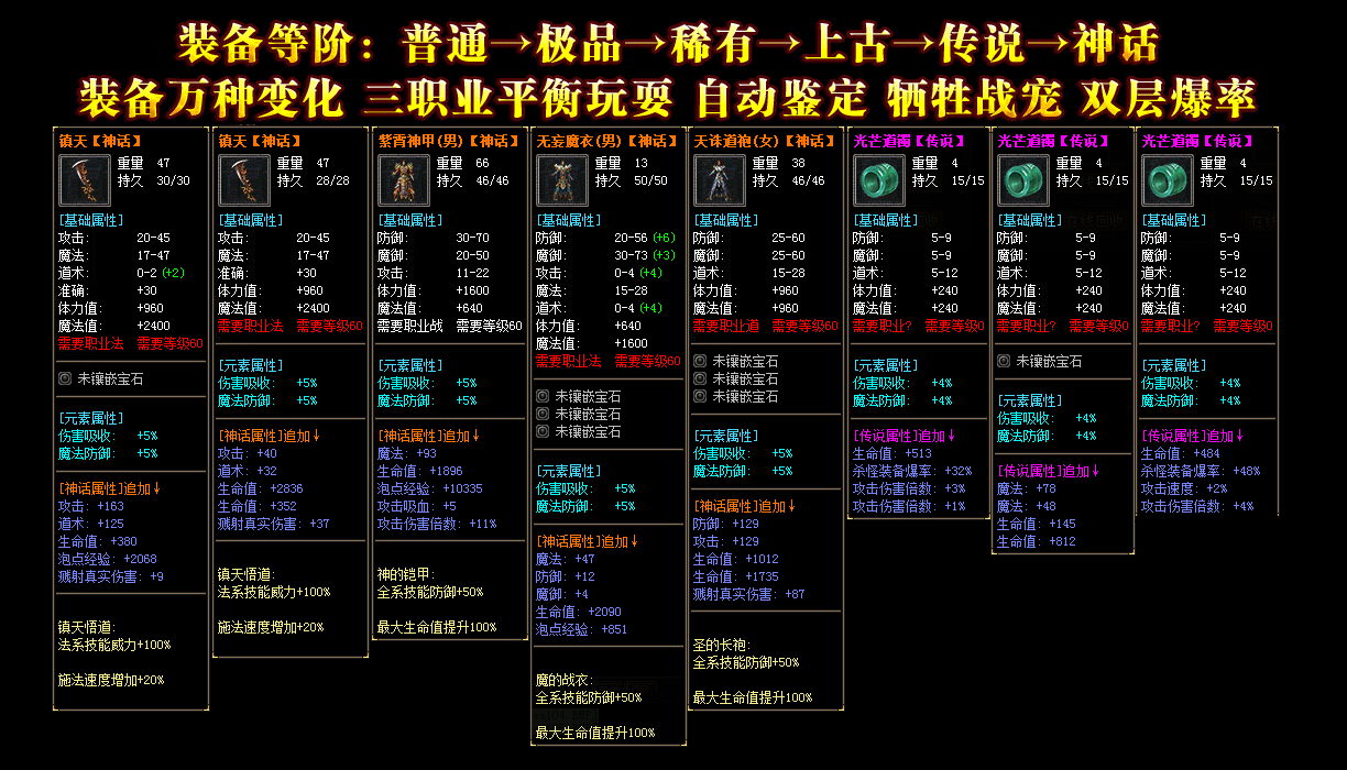三职业平衡好玩、不跨张、前期道士法师→后期战士.