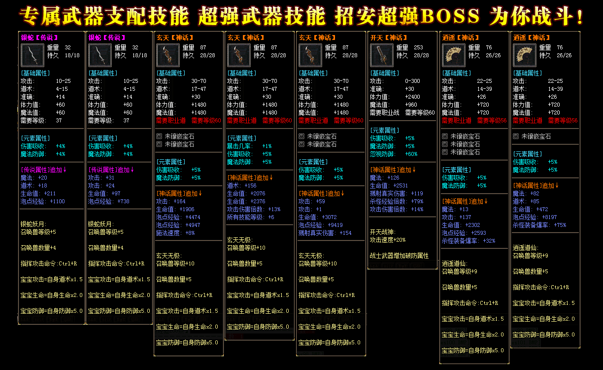 专属武器技能、招安超级BOSS、为你战斗、横扫本服!