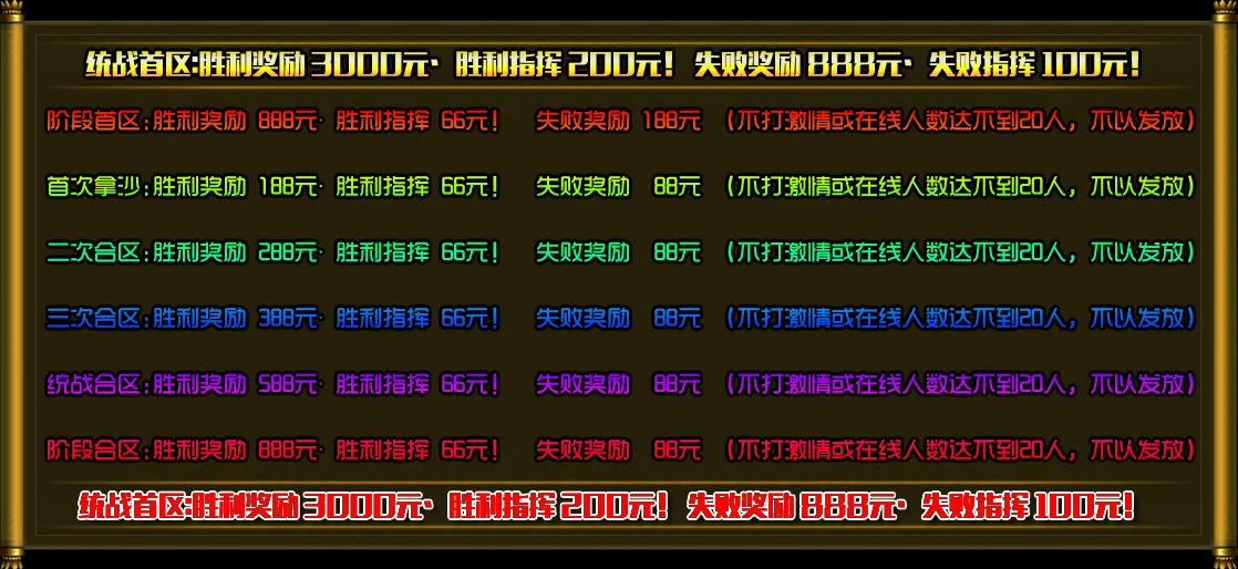 ⑤.三次合区:胜利奖励388元 胜利指挥 66元!失败奖励88元。
