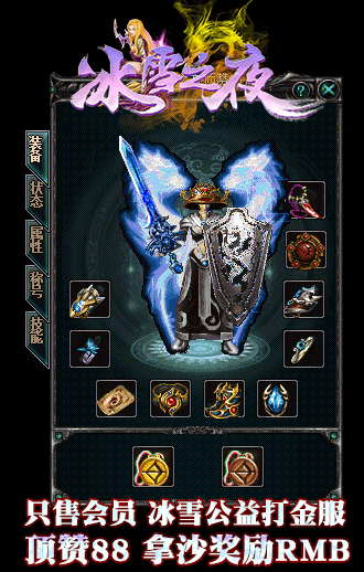 - 【游戏公告】:冰雪之夜顶赞88元,多充一分都没用!QQ担保群:451736555首沙攻城奖励:RMB1688!