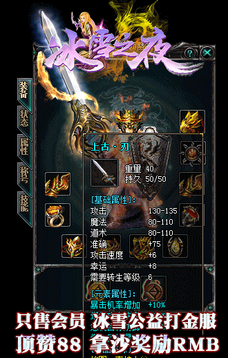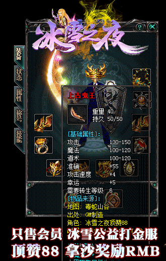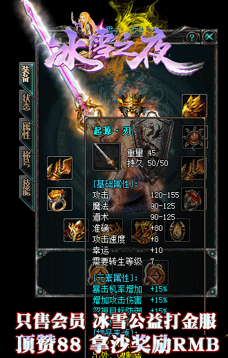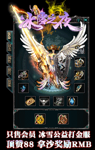 - 【游戏公告】:本服元宝装备全可以卖RMB,纯公益服,只卖会员!其余玩家交易手里获得!
