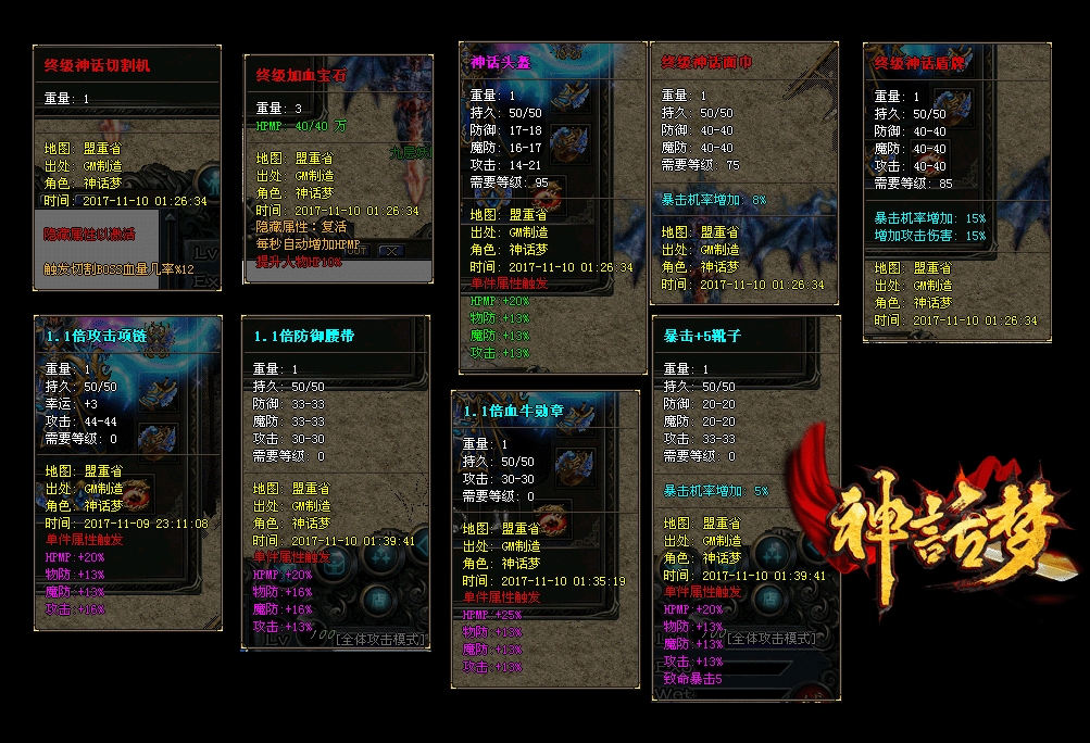 所有地图免费进入,所有装备0级佩戴,海量BOSS,神器