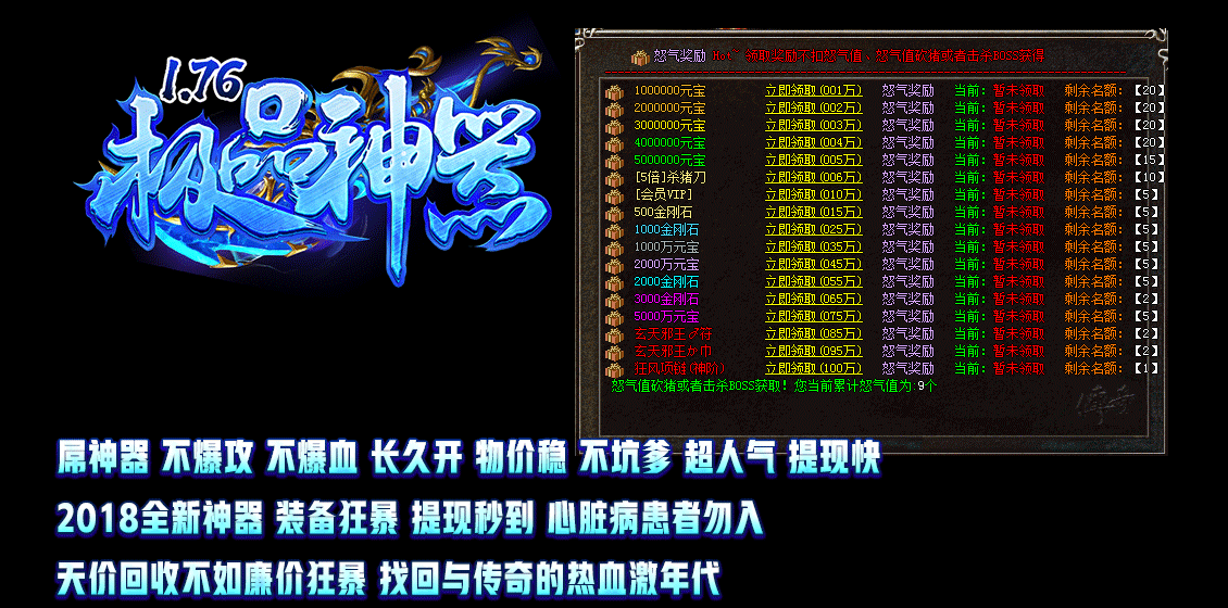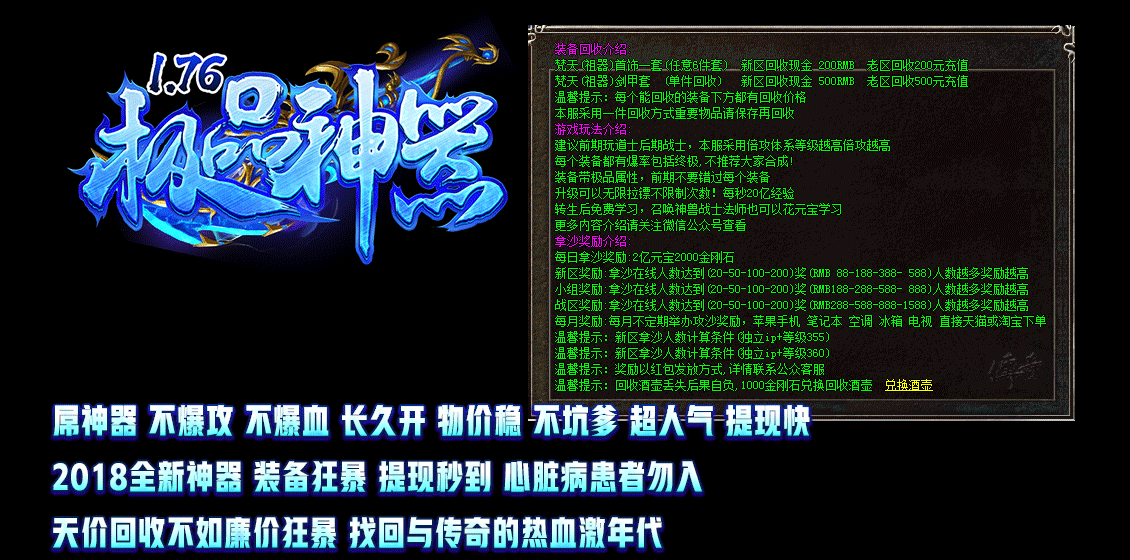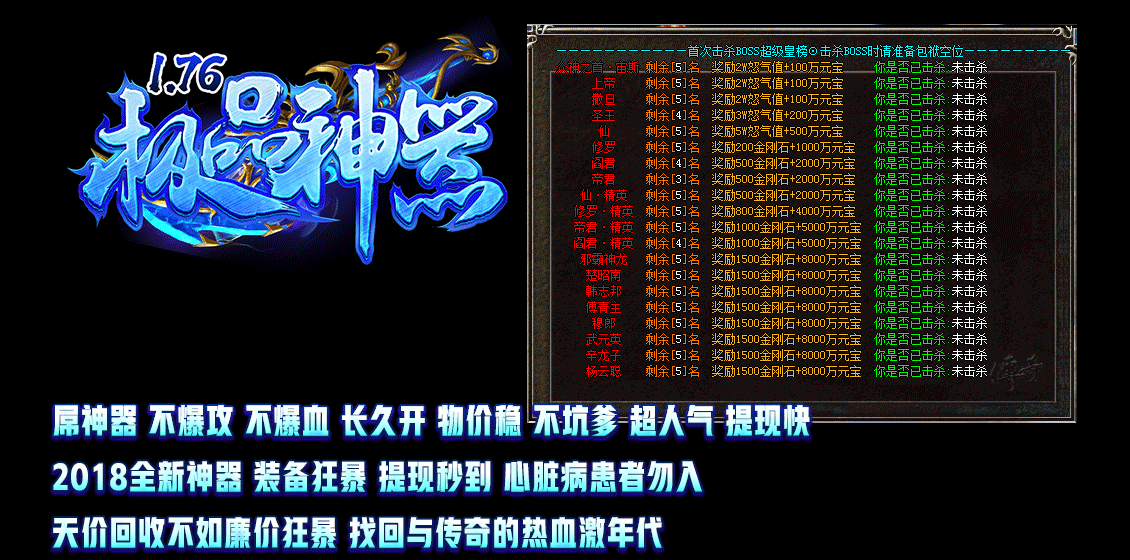 用心制作 版本独特 玩法打破常规 市场仅此一家!无隐藏消费 散人好混 无限激情 主打BOSS,爆神器