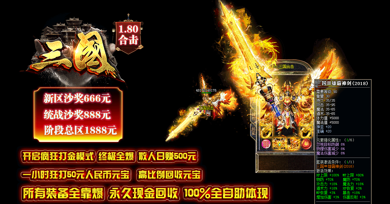◆【三国雄霸神剑】 回收500元 永久现金回收 合区不掉价