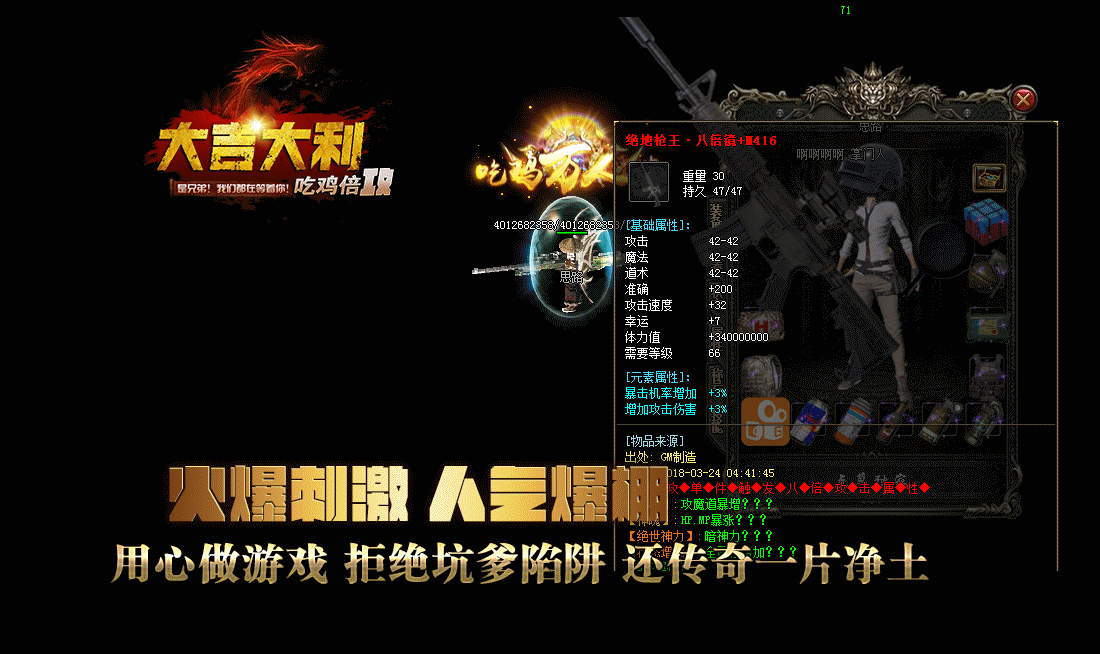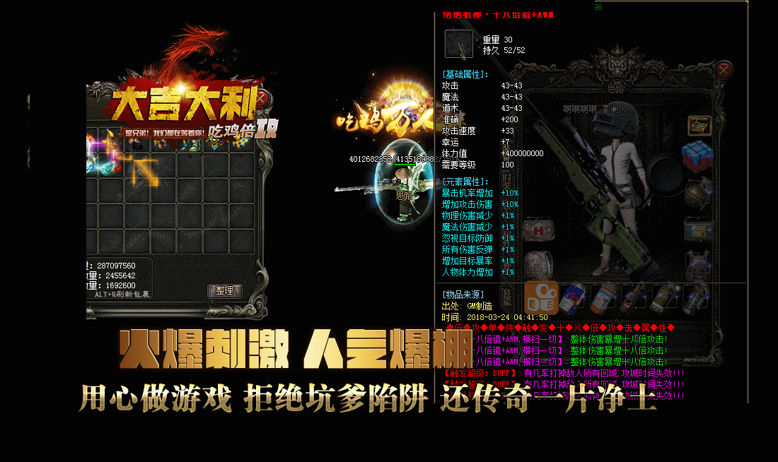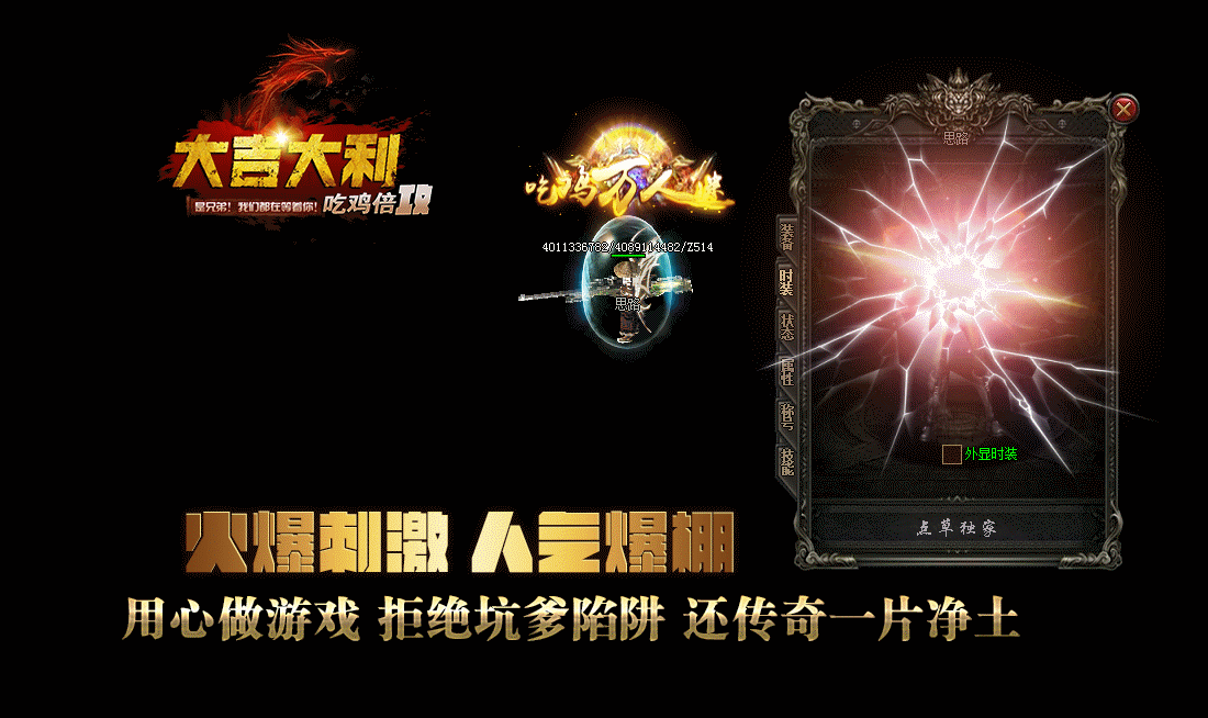 【游戏介绍】:独创打怪模式,全图刷BOSS,调整所有分区爆率,激情耐玩。