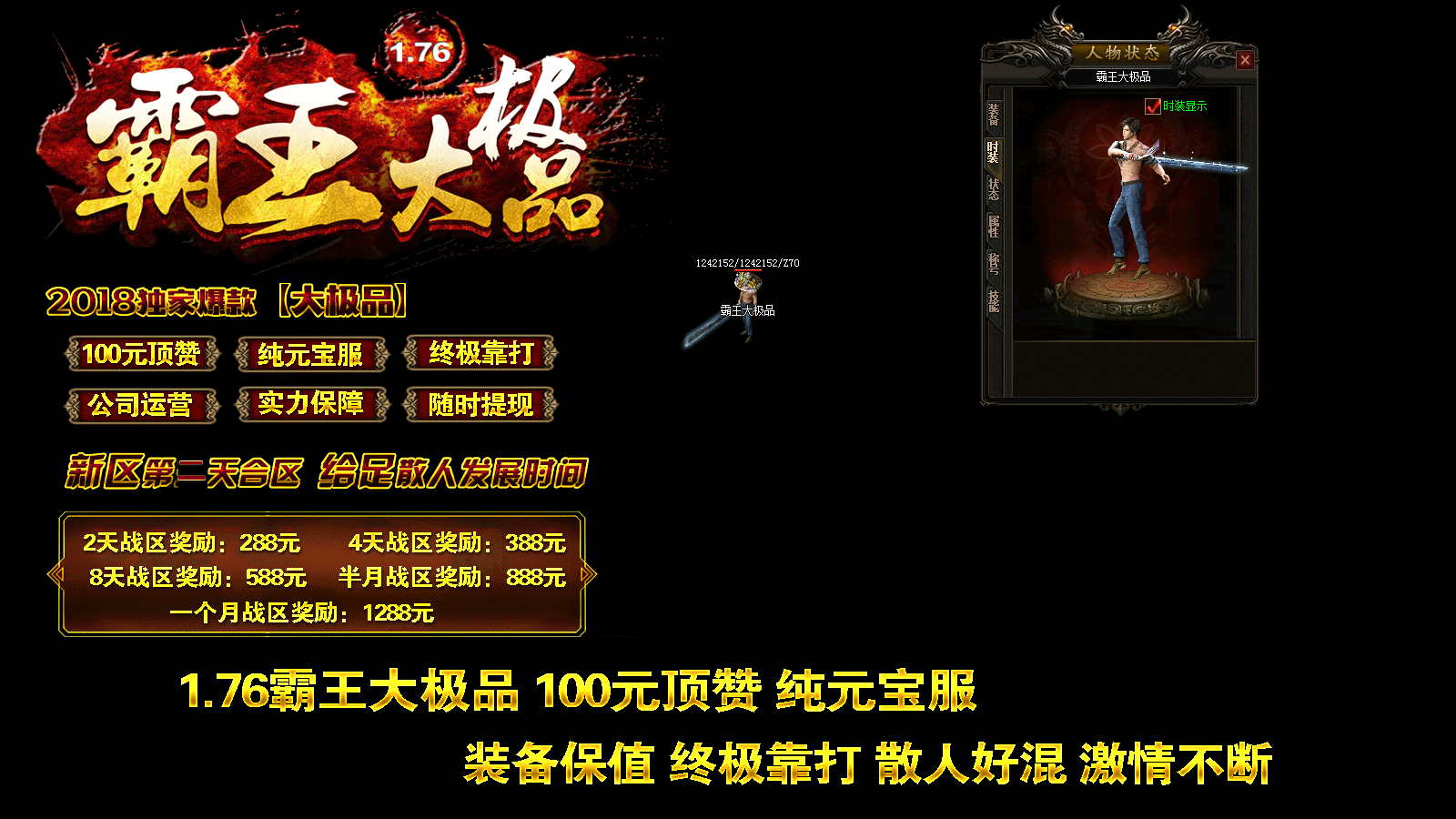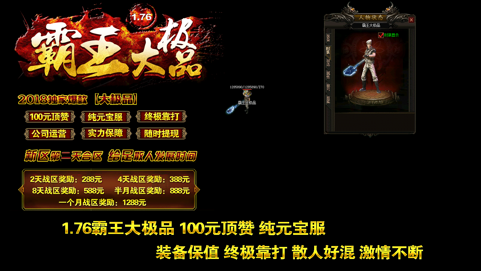 《怪物首杀 装备首爆 可大量满足 散人玩家的需求 可获得网银充值 直接领取赞助》