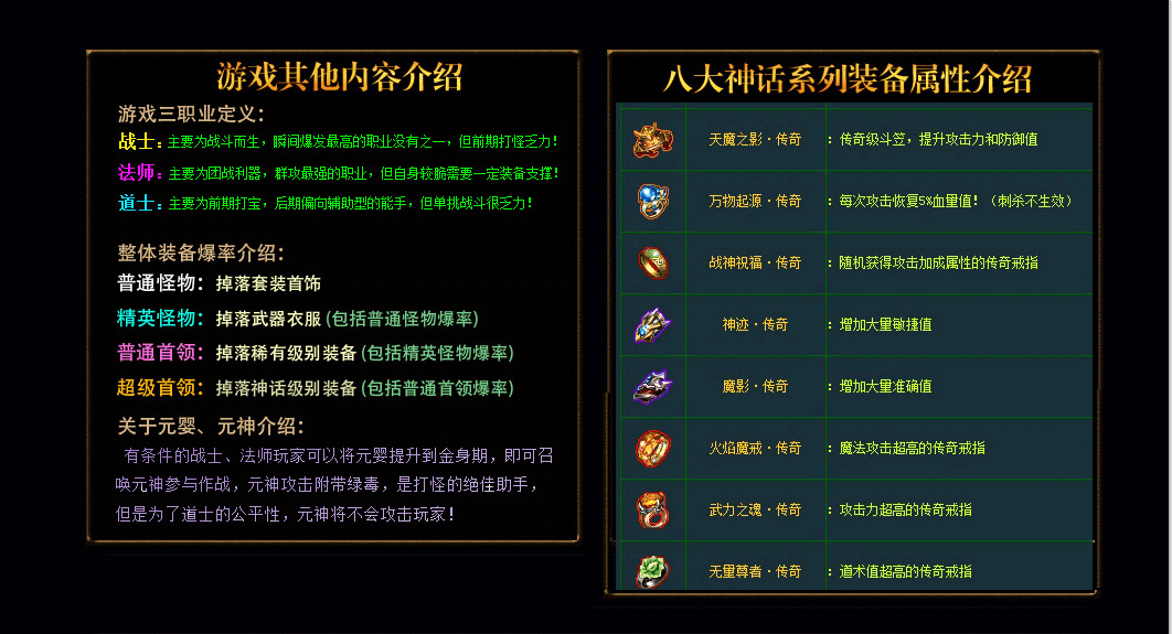 • 【游戏介绍】本服所有装备全部都能爆到,所有地图无垃圾怪,是怪必定爆装备!!