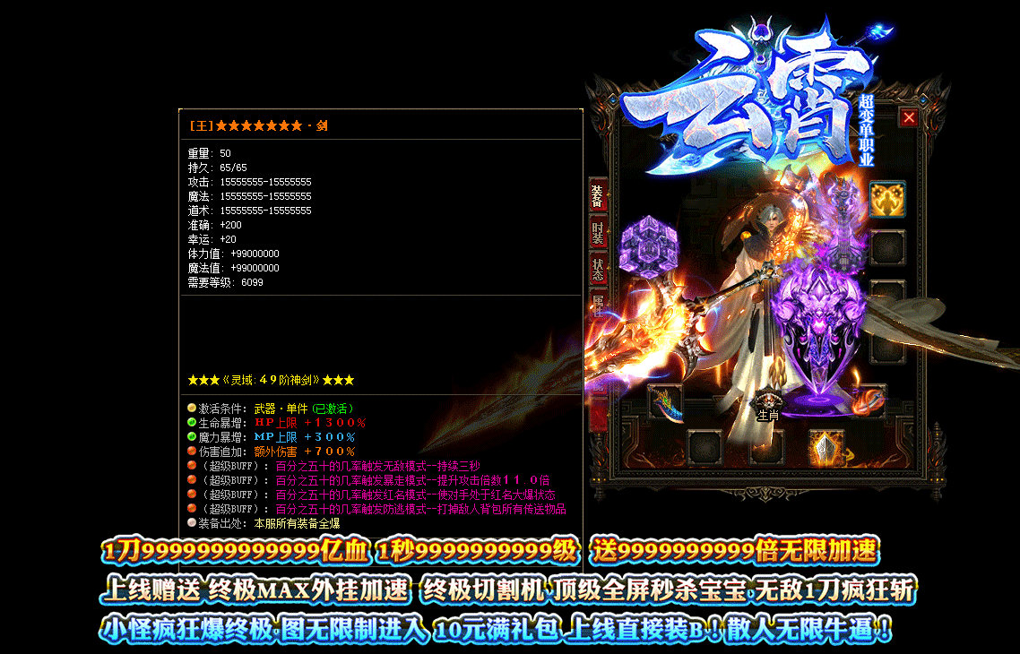 • 介绍1分钟乱爆99999999999亿元宝 5分钟99999999999套终极!