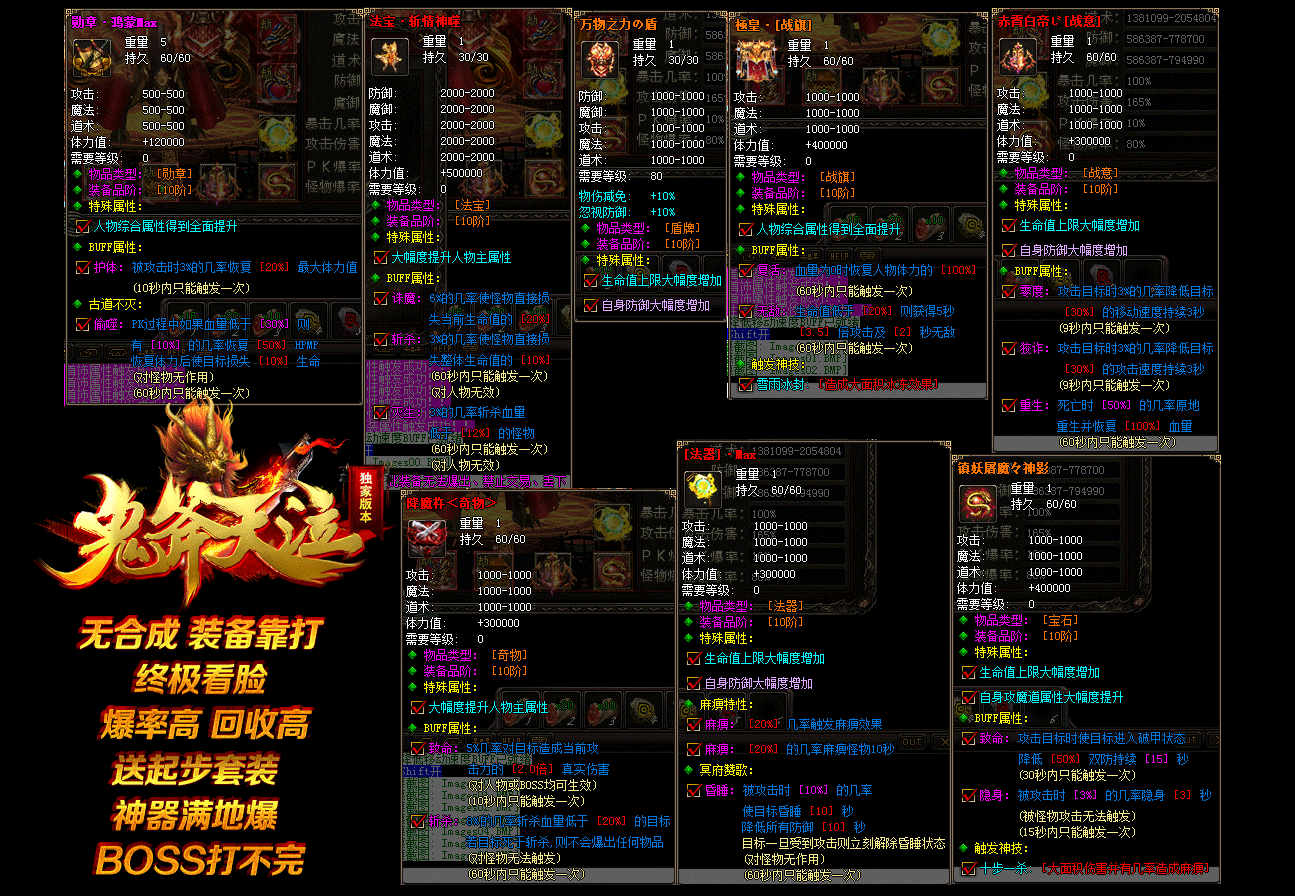 【游戏介绍】 没有任何装备合成.我们的口号就是所有装备靠打.不需要任何合成.无任何移仓