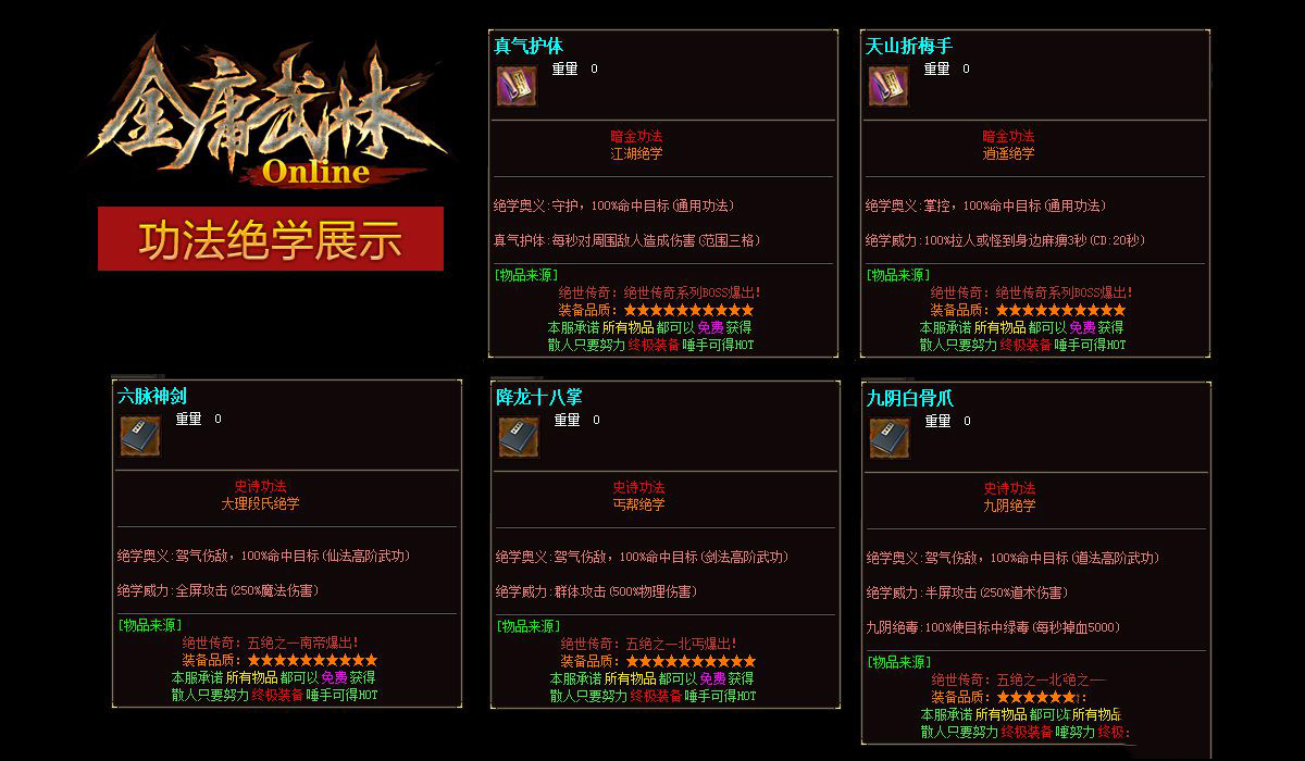 【金庸武林】全新制作√品牌大服√散人天堂√长久稳定√实力打造专业传奇!