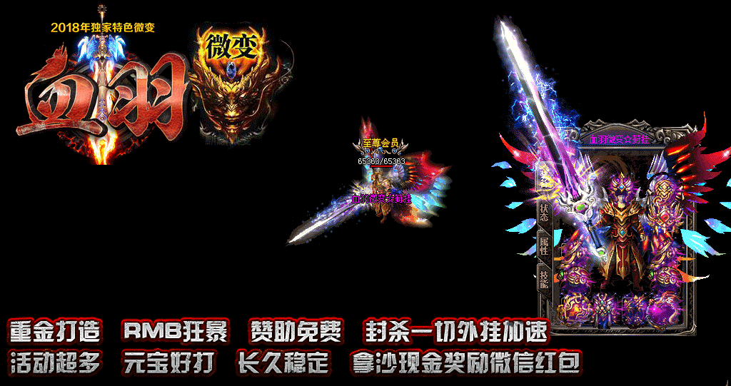 【血羽微变微变·无元宝充值·真正散人打金长期公益微变】