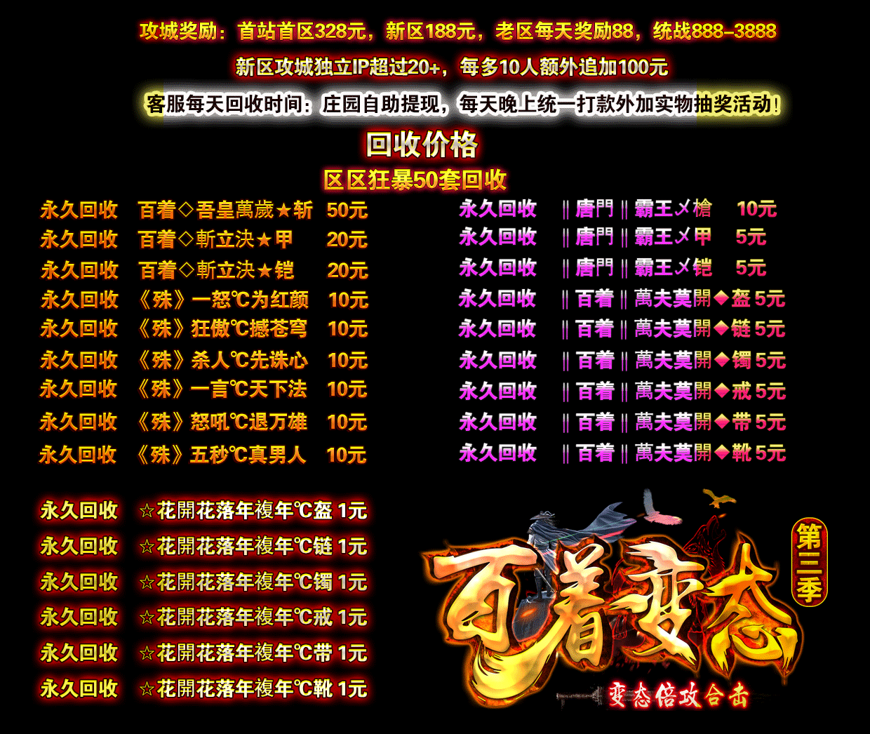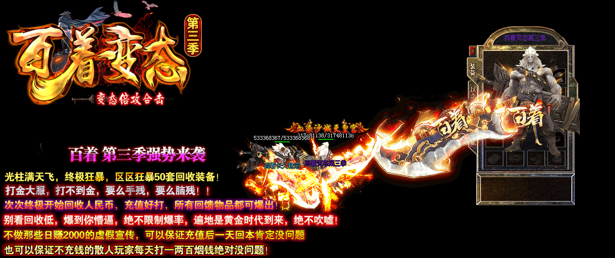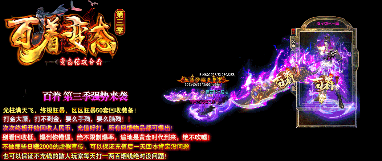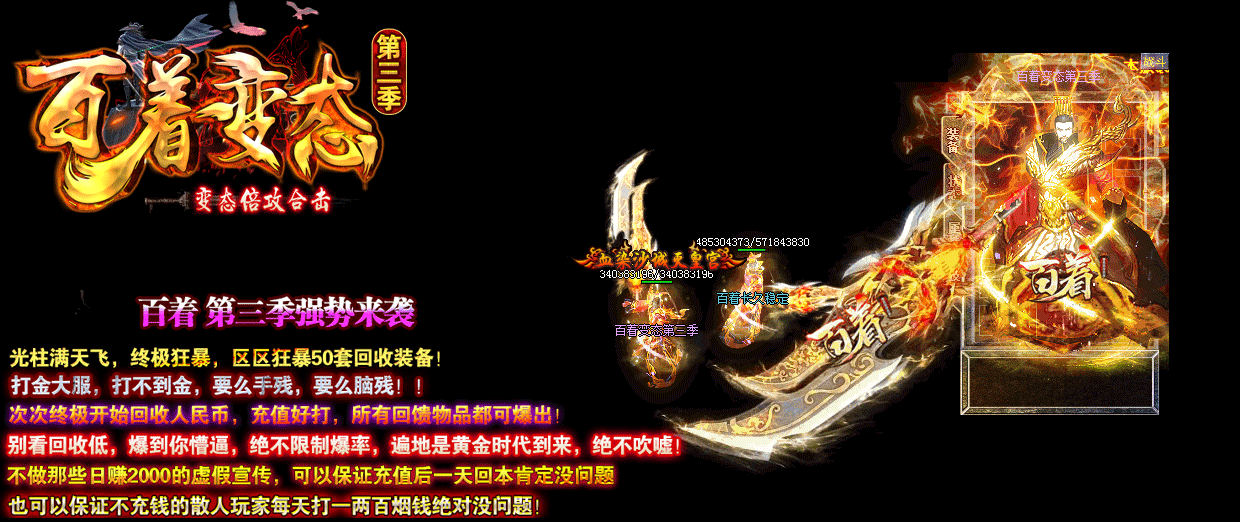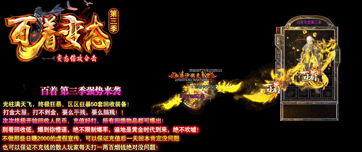 • 百着倍攻:全新制作√品牌大服√散人天堂√长久稳定√实力打造专业传奇!