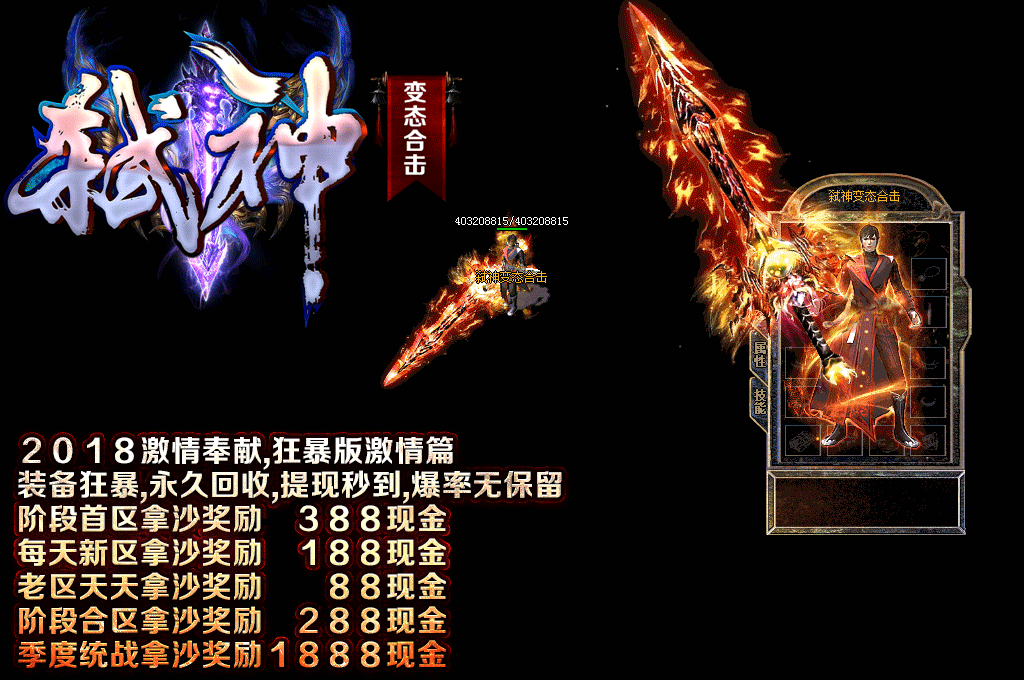 ====================倍攻武器介绍==================================================== [(1)阶]孤魂野鬼◎刃-------2倍攻击 [(2)阶]鬼泣神嚎◎刃-------4倍攻击 [(3)阶]鬼神莫测◎刃-------6倍攻击 [(4)阶]魂飘神荡◎刃-------8倍攻击 [(5)阶]龙鬼蛇神◎刃------12倍攻击 [(6)阶]神鬼难测◎刃------16倍攻击 [(7)阶]神魂荡飏◎兵------20倍攻击 [(8)阶]仙魔降临の兵------30倍攻击 [(9)阶]开天辟地乄兵------40倍攻击 [(10)阶]叱咤风云★兵-----50倍攻击 [(11)阶]威震仙界★兵-----60倍攻击 [(12)阶]弑神风云■兵-----70倍攻击 [(13)阶]魔神幻影□兵-----90倍攻击 [(14)阶]神王千幻■兵----110倍攻击 [(15)阶]神界传说★剑----130倍攻击 [(16)阶]武林至尊の剑----160倍攻击 [(17)阶]傲视群雄ヅ剑----190倍攻击 [(18)阶]号令三界≌剑----220倍攻击 [(19)阶]幽冥鬼道≌剑----250倍攻击 附带每秒回血50W [(20)阶]落櫻飛羽∞剑----300倍攻击 附带每秒回血100W [(21)阶]逆轉乾坤メ剑----400倍攻击 附带每秒回血300W [(22)阶]風雲戦歌メ剑----550倍攻击 附带每秒回血600W [(23)阶]雄霸天下メ剑----700倍攻击 附带每秒回血800W [(24)阶]泣血噬魂※剑----880倍攻击 可鉴定倚天劈地技能..附带每秒回血1000W 血泊技能3 [(25)阶]殺戮赤練ゞ剑---1100倍攻击 可鉴定倚天劈地技能..附带每秒回血1500W 血泊技能6级 [Max]返璞归真ゞ剑------1300倍攻击 破复活 可鉴定倚天劈地技能..附带每秒回血2000W 血泊技能9级 ===============倍攻首饰衣服介绍==================================================== [(5)阶]龙鬼蛇神◎套=======佩戴触发 4倍 (包括衣服) [(6)阶]神鬼难测◎套=======佩戴触发 6倍 (包括衣服) [(7)阶]神魂荡飏◎套=======佩戴触发 8倍 (包括衣服) [(8)阶]仙魔降临の套=======佩戴触发 10倍 (包括衣服) [(9)阶]开天辟地乄套=======佩戴触发 12倍 (包括衣服) [(10)阶]叱咤风云★套======佩戴触发 14倍 (包括衣服) [(11)阶]威震仙界★套======佩戴触发 16倍 (包括衣服) [(12)阶]弑神风云■套======佩戴触发 18倍 (包括衣服) [(13)阶]魔神幻影□套======佩戴触发 21倍 (包括衣服) [(14)阶]神王千幻■套======佩戴触发 24倍 (包括衣服) [(15)阶]神界传说★套======佩戴触发 27倍 (包括衣服) [(16)阶]武林至尊の套======佩戴触发 30倍 (包括衣服) [(17)阶]傲视群雄ヅ套======佩戴触发 35倍 (包括衣服) [(18)阶]号令三界≌套======佩戴触发 44倍 (包括衣服) [(19)阶]幽冥鬼道≌套======佩戴触发 55倍 (包括衣服) [(20)阶]落櫻飛羽∞套======佩戴触发 66倍 (包括衣服) [(21)阶]逆轉乾坤メ套======佩戴触发 77倍 (包括衣服) [(22)阶]風雲戦歌メ套======佩戴触发 88倍 (包括衣服) [(23)阶]雄霸天下メ套======佩戴触发 99倍 (包括衣服) [(24)阶]泣血噬魂※套======佩戴触发110倍 (包括衣服) [(25)阶]殺戮赤練ゞ套======佩戴触发120倍 (包括衣服) [Max]返璞归真ゞ套=========佩戴触发130倍 (包括衣服) ================================= 特殊装备与四格介绍============================== [Max]返璞归真ゞ笠==佩戴触发元素属性各加百分之15,伤害不要太可怕! [Max]返璞归真ゞ章==佩戴触发200倍每秒回血800W 破复活属性,十二级血泊技能(超级伤害) 弑神☆圣心[Max]==佩戴触发200倍每秒回血300W 复活属性,防全毒,防麻痹 弑神☆血石[Max]==佩戴触发200倍每秒回血3000W 主号撑血 ℃斩神★★霸王盔==(单件触发200倍攻击属性)(集齐三件套触发神级防御技能【武力盾】) ℃斩神★★霸王靴==(单件触发200倍攻击属性)(集齐三件套触发神级防御技能【武力盾】) ℃斩神★★霸王带==(单件触发200倍攻击属性)(集齐三件套触发神级防御技能【武力盾】) 三件套属性介绍==没有武力盾的情况下 主号能抗俩个合击技能,触发武力盾能抗四个合击技能! 三件套属性介绍==没有武力盾的情况下 主号能抗俩个合击技能,触发武力盾能抗四个合击技能! 以上所有装备属性玩家自行体验,GM不多BB,值不值得拥有看你们自己! 以上所有装备属性玩家自行体验,GM不多BB,值不值得拥有看你们自己! ======================================QQ交流群介绍================================ 弑神变态合击交流群:113461128 打不开登陆器下载慢的玩家请加群 弑神变态合击交流群:113461128 打不开登陆器下载慢的玩家请加群 弑神变态合击交流群:113461128 打不开登陆器下载慢的玩家请加群 弑神变态合击交流群:113461128 打不开登陆器下载慢的玩家请加群 =============================装备回收红包介绍===================================== [Max]返璞归真ゞ剑=======================永久回收30RMB [Max]返璞归真ゞ甲=======================永久回收10RMB [Max]返璞归真ゞ章=======================永久回收20RMB [Max]返璞归真ゞ首饰=====================永久回收 5RMB [(25)阶]殺戮赤練ゞ首饰==================永久回收 1RMB ℃斩神★★霸王三件套====================永久回收50RMB(三件装备一起回收,靴子,头盔,腰带) 本服减少回收装备提高回收充值,但是装备提爆率高,终极装备爆率全开真实有效!!!!!!!! 本服减少回收装备提高回收充值,但是装备提爆率高,终极装备爆率全开真实有效!!!!!!!! 每日回收时间:21-22点!!请大家准备好支付宝,微信!! 每日回收时间:21-22点!!请大家准备好支付宝,微信!! =======================================沙奖励红包介绍============================= 新区2天合区拿沙奖励388RMB 每天新区合区拿沙奖励188RMB 老区天天激情拿沙奖励 88RMB 阶段合区激情拿沙奖励288RMB 季度统战激情拿沙奖励1888RMB 拿沙奖励发放方式:微信红包群,拿完沙后,建好微
