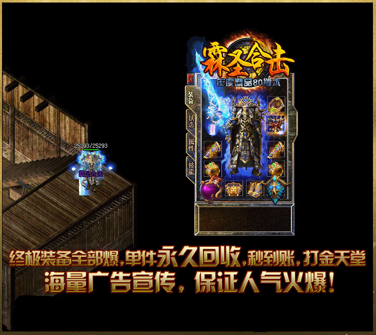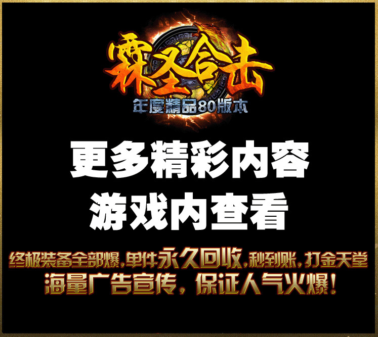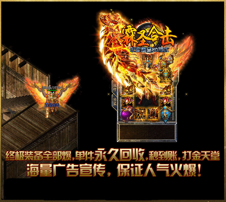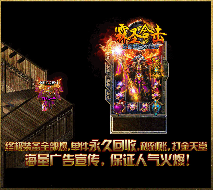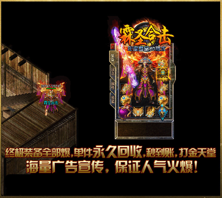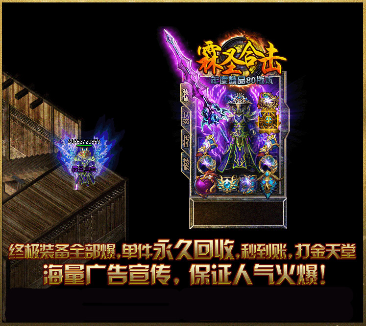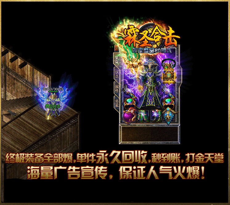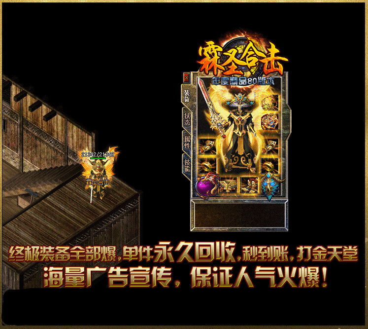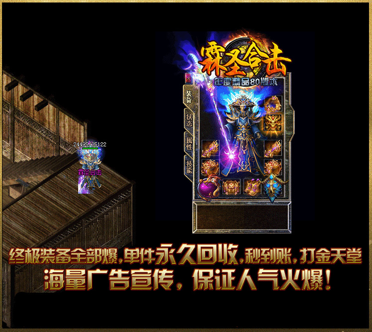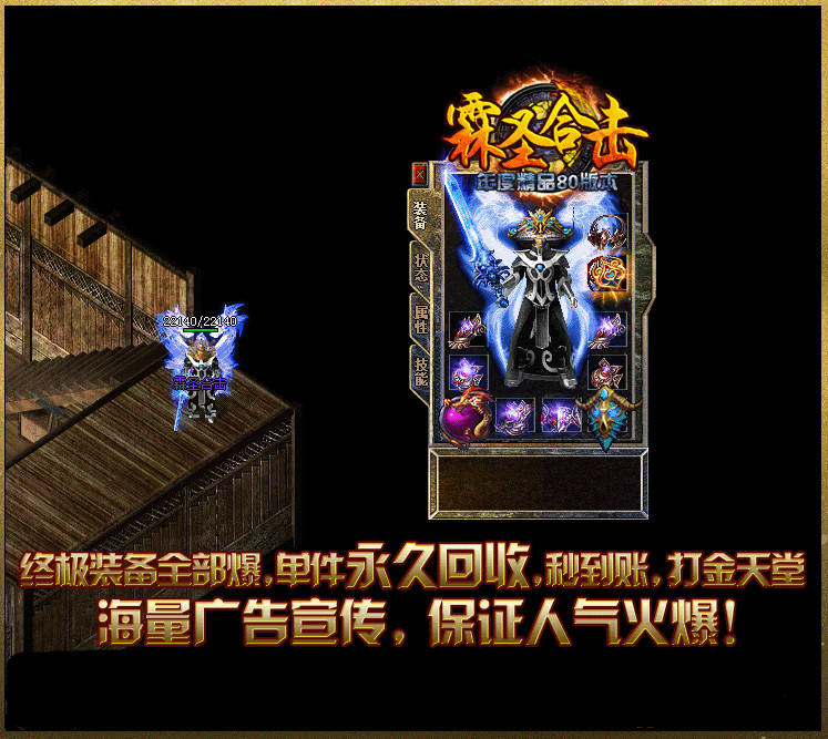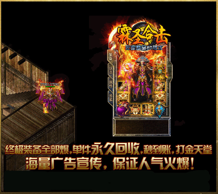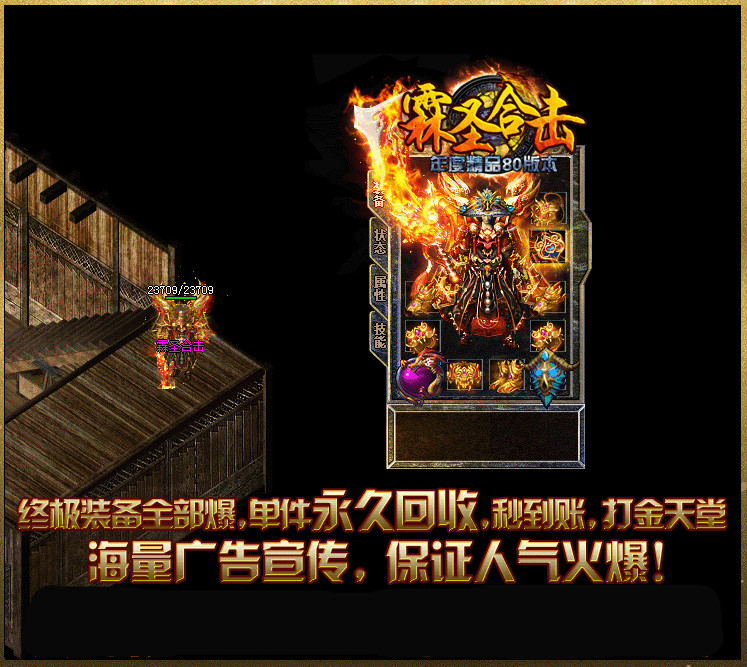 游戏特色:终极装备全部爆,单件永久回收,秒到账,打金天堂
