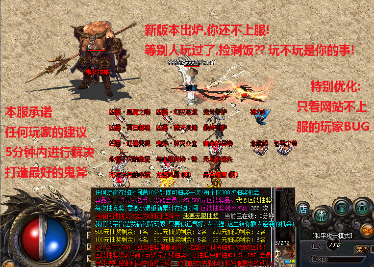 最新更新时间2019年8月21日,经过玩家建议及游戏特点优化,请花10分钟进游戏体验一下,! 所有装备爆率全开,地图超多,内涵丰富,散人好发展。