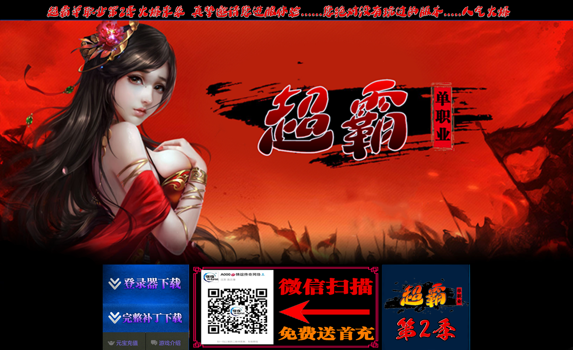 2017年《超霸单职业2季》单职业火爆上市,区区重金广告,人气保证----
