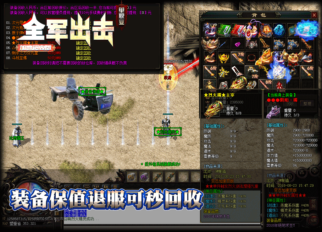 • 【打金介绍】:装备保值。打到即可回收RMB。信誉放心。