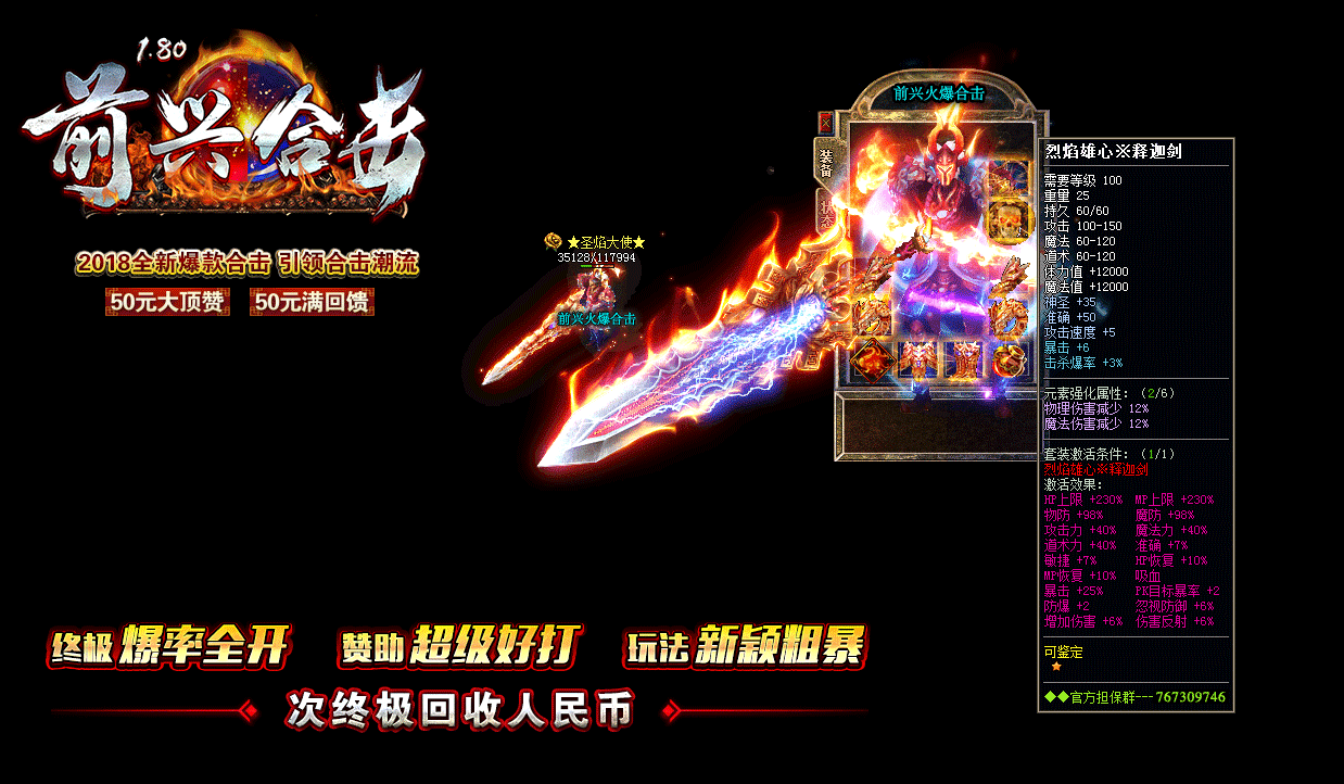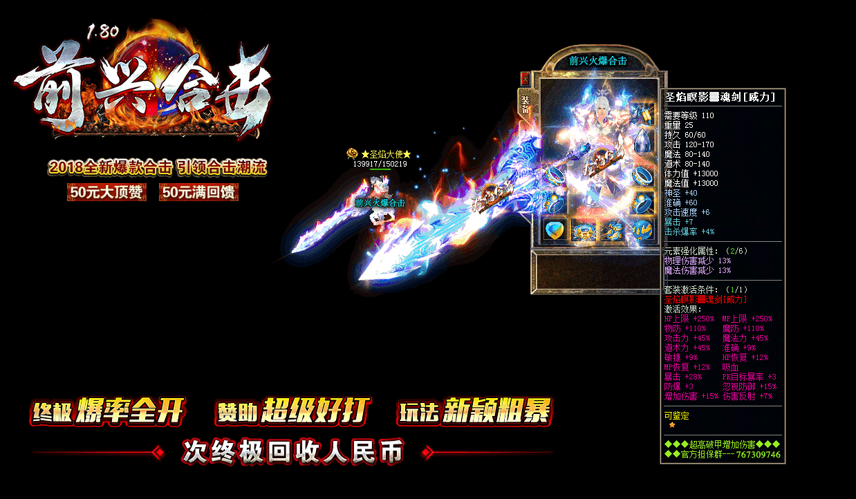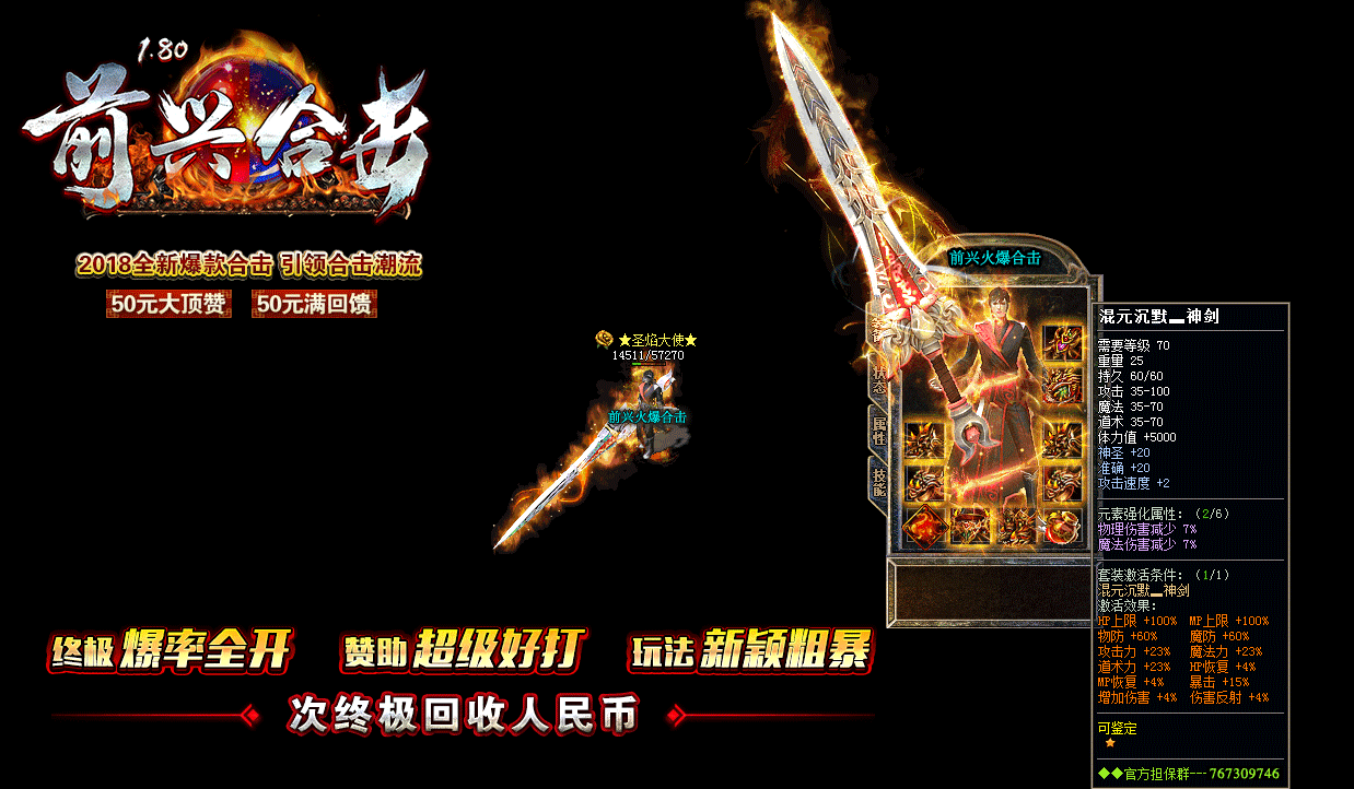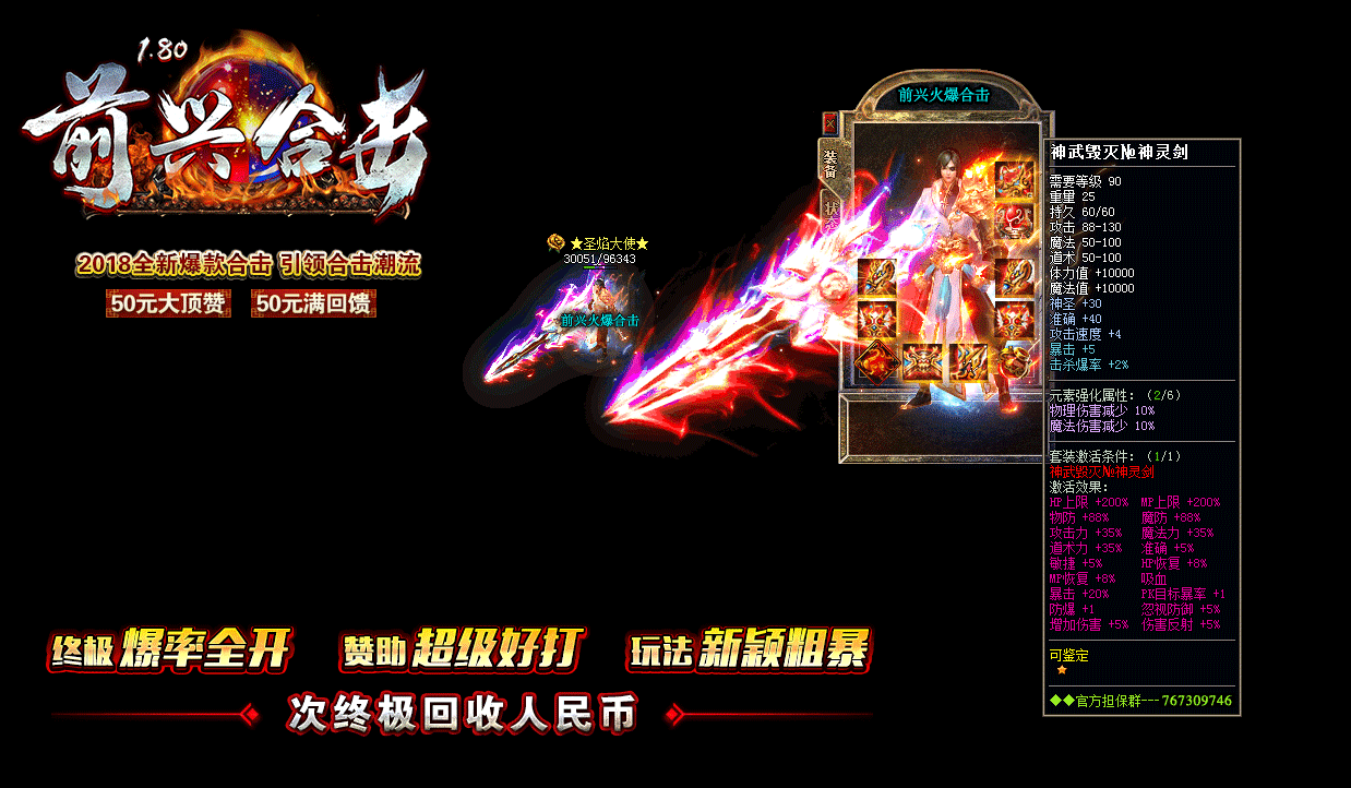 【游戏介绍】:2019年全新爆款合击 引领合击潮流 50元大顶赞 50元满回馈!