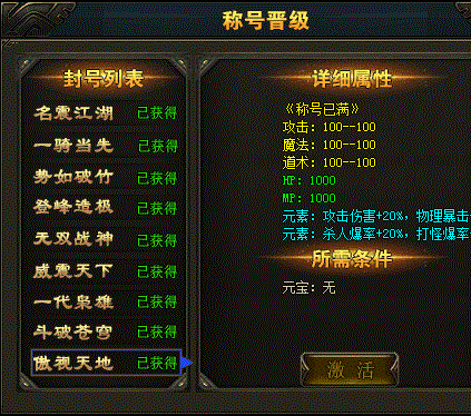- 【公告】6.提升会员送专属封号,倍功,爆率,属性,物品等大量宝物,绝对物超所值