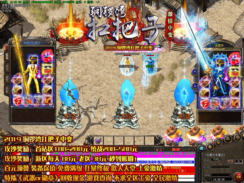 装备全爆,元宝好打,等级免费,在线回收,让你根本停不下来!
