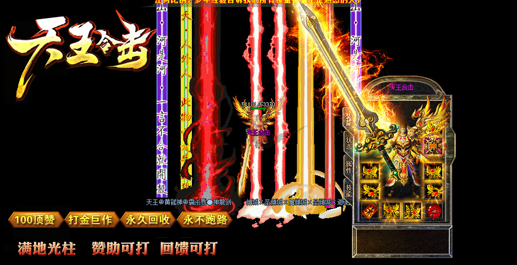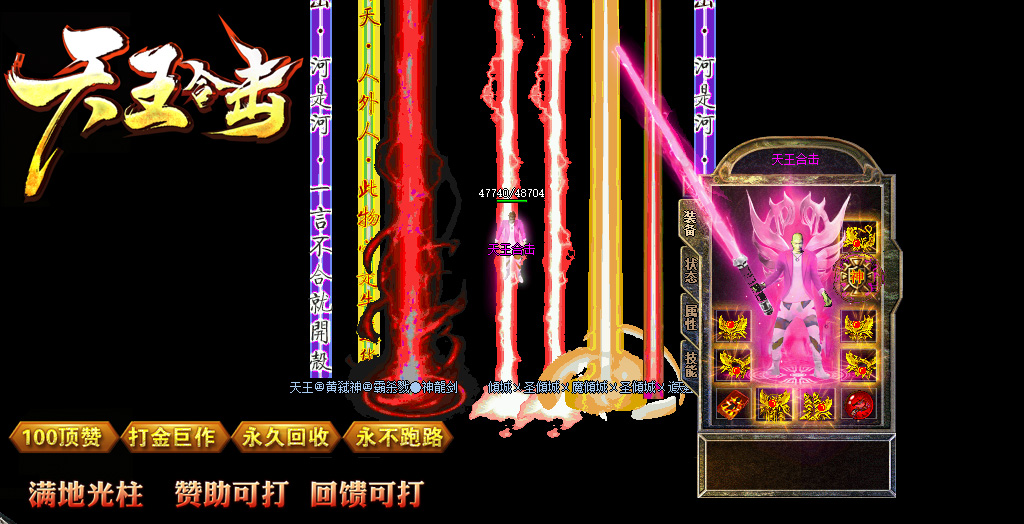 天王合击重金广告!首沙奖励1088元现金红包.10元秒提现,顶赞100元, 满地光柱,沙奖励现金,永久回收,霸屏广告!!