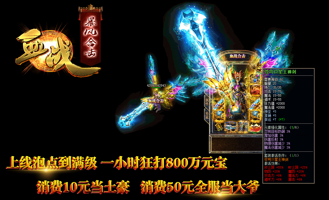 - 【新手起步】新人上线到土城右下角领取霸天大礼包,即可获得新手血石圣心