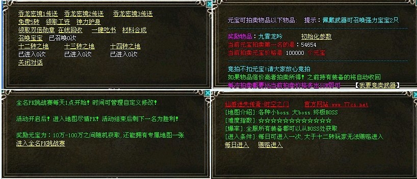 全新的竞拍NPC-----竞拍武器不花一分元宝-----只要你身上元宝够------就可竞拍------竞拍神器可唤醒元素-----更可召唤强力宝宝!