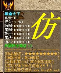 装备出处:传送员地图均可爆出一切套装装备,本服BOSS爆出一切单件属性装备及终极装备,武器,材料,衣服等等!!